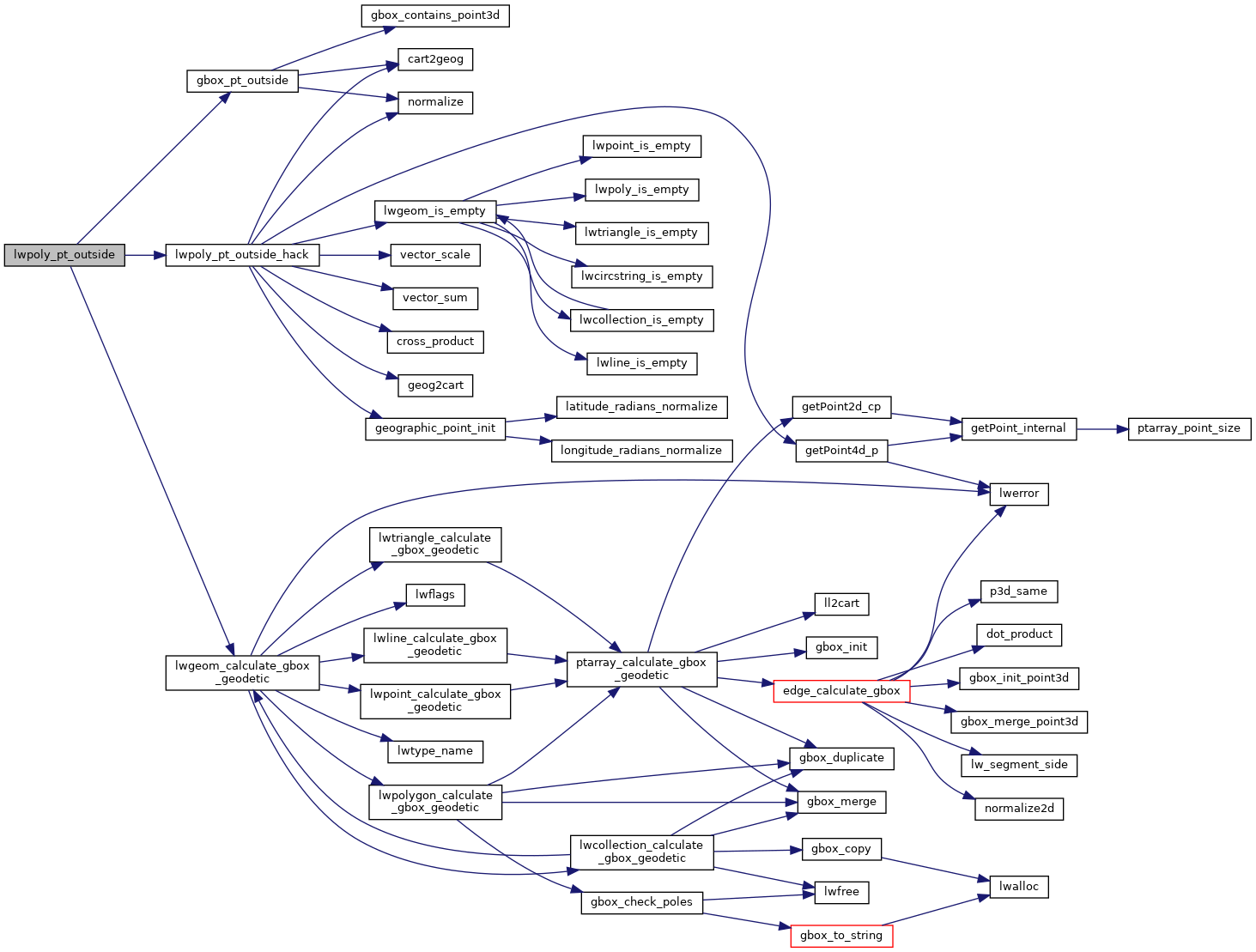 References LWPOLY::bbox, gbox_pt_outside(), LW_FALSE, lwgeom_calculate_gbox_geodetic(), and lwpoly_pt_outside_hack().