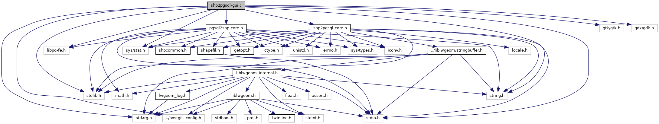 Include dependency graph for shp2pgsql-gui.c: