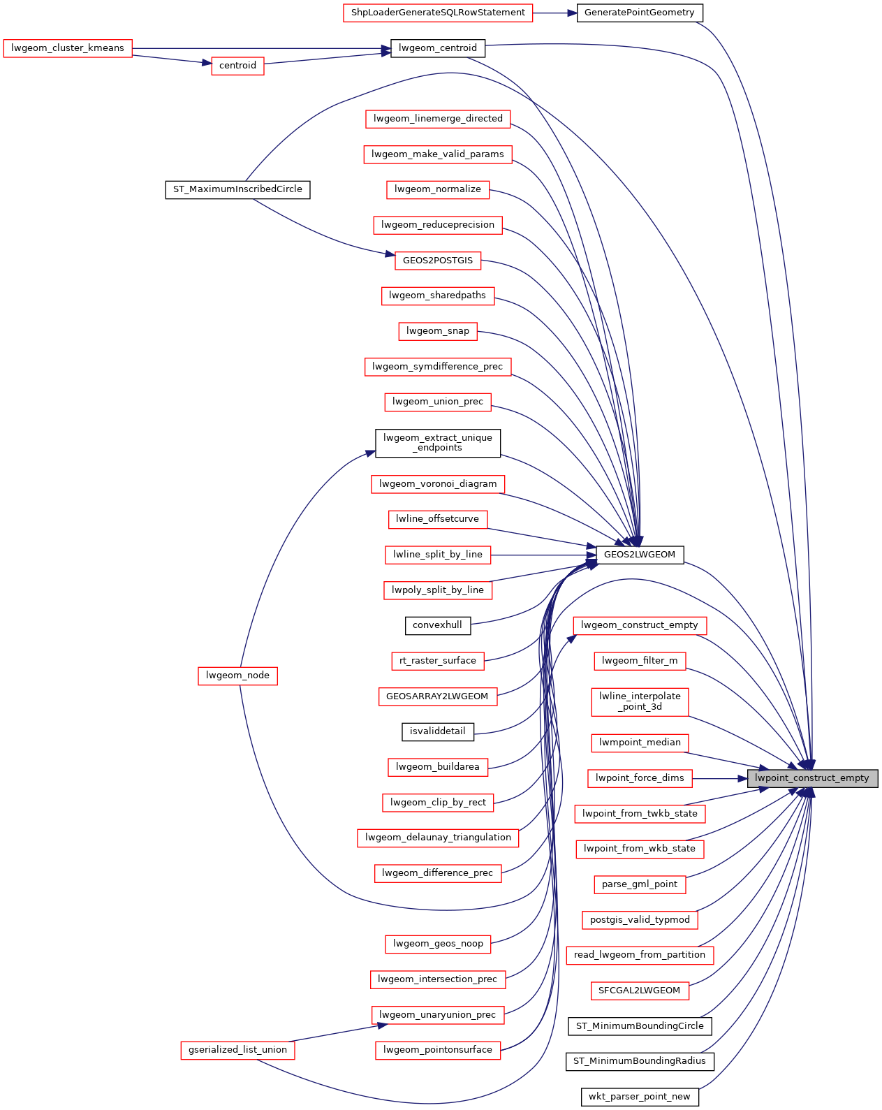 Referenced by GeneratePointGeometry(), GEOS2LWGEOM(), lwgeom_centroid(), lwgeom_construct_empty(), lwgeom_filter_m(), lwgeom_pointonsurface(), lwline_interpolate_point_3d(), lwmpoint_median(), lwpoint_force_dims(), lwpoint_from_twkb_state(), lwpoint_from_wkb_state(), parse_gml_point(), postgis_valid_typmod(), read_lwgeom_from_partition(), SFCGAL2LWGEOM(), ST_MaximumInscribedCircle(), ST_MinimumBoundingCircle(), ST_MinimumBoundingRadius(), and wkt_parser_point_new().