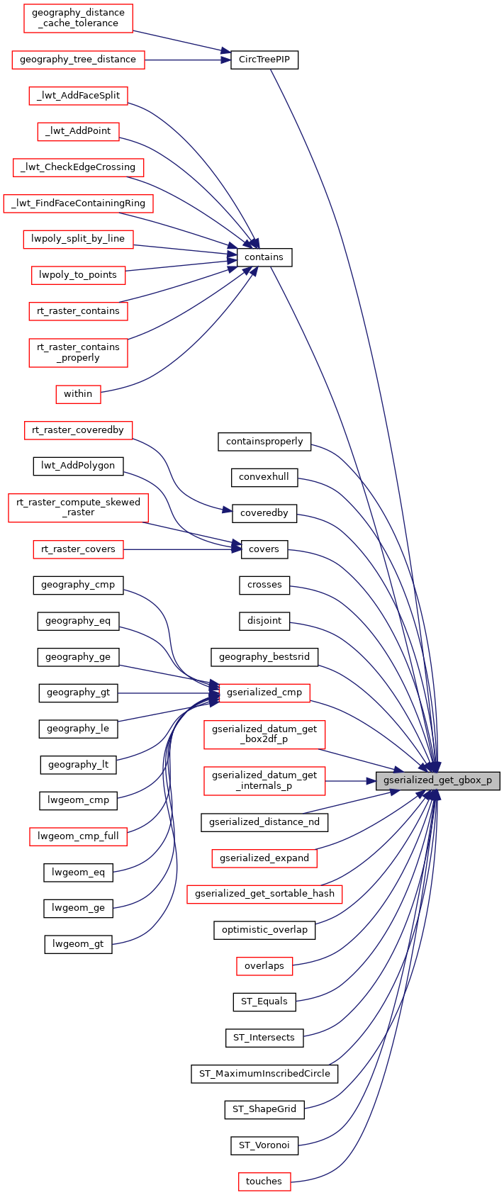 Referenced by CircTreePIP(), contains(), containsproperly(), convexhull(), coveredby(), covers(), crosses(), disjoint(), geography_bestsrid(), gserialized_cmp(), gserialized_datum_get_box2df_p(), gserialized_datum_get_internals_p(), gserialized_distance_nd(), gserialized_expand(), gserialized_get_sortable_hash(), optimistic_overlap(), overlaps(), ST_Equals(), ST_Intersects(), ST_MaximumInscribedCircle(), ST_ShapeGrid(), ST_Voronoi(), and touches().