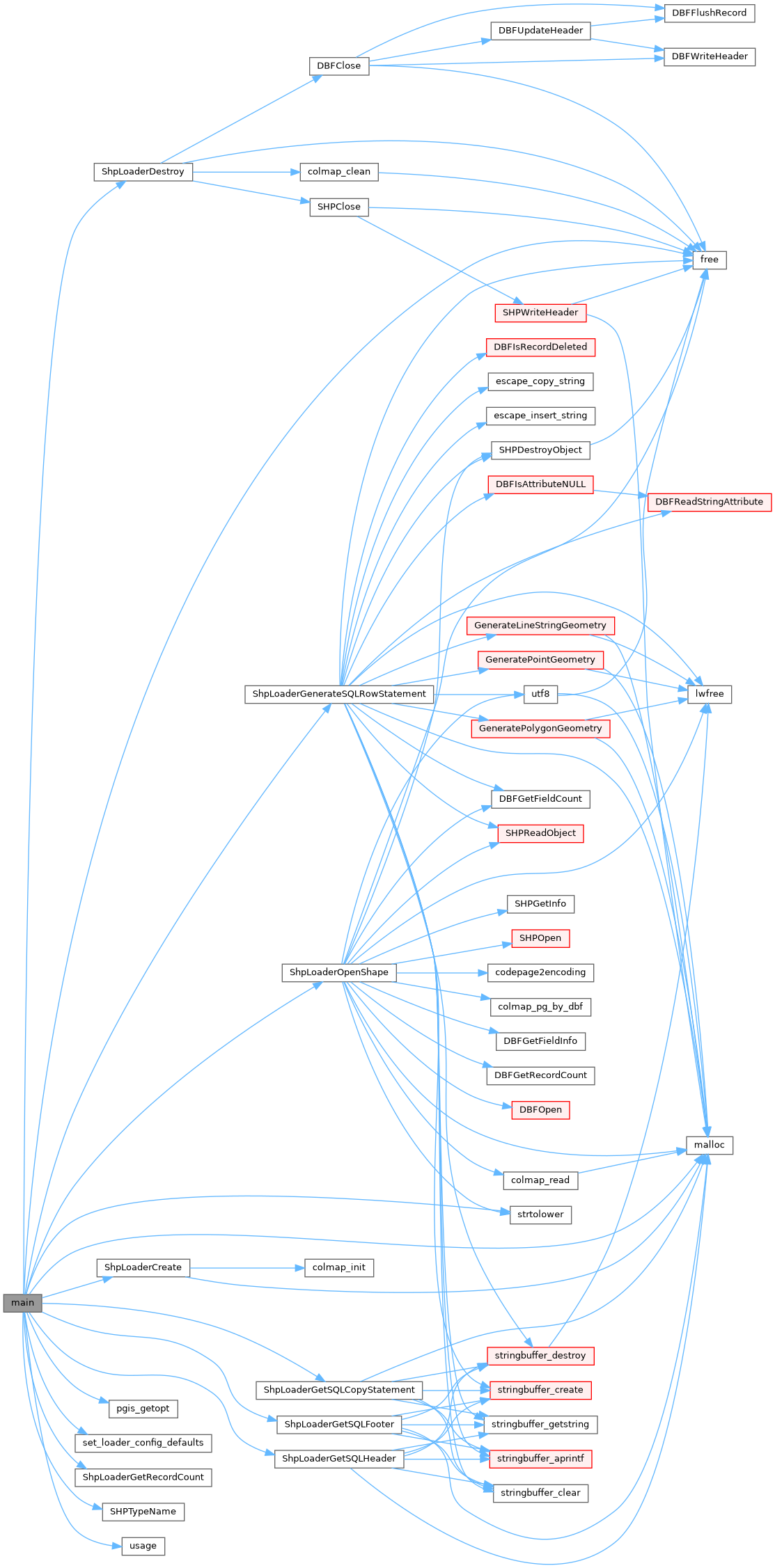 References shp_loader_config::analyze, shp_loader_config::column_map_filename, shp_loader_state::config, shp_loader_config::createindex, shp_loader_config::dump_format, shp_loader_config::encoding, shp_loader_config::force_output, FORCE_OUTPUT_2D, FORCE_OUTPUT_3DM, FORCE_OUTPUT_3DZ, FORCE_OUTPUT_4D, shp_loader_config::forceint4, free(), shp_loader_config::geo_col, shp_loader_config::geography, shp_loader_config::idxtablespace, malloc(), shp_loader_state::message, shp_loader_config::null_policy, shp_loader_config::opt, shp_loader_state::pgdims, pgis_getopt(), pgis_optarg, pgis_optind, shp_loader_state::pgtype, POLICY_NULL_ABORT, POLICY_NULL_INSERT, POLICY_NULL_SKIP, shp_loader_config::quoteidentifiers, shp_loader_config::readshape, shp_loader_config::schema, set_loader_config_defaults(), shp_loader_config::shp_file, shp_loader_config::shp_sr_id, shp_loader_state::shpfiletype, ShpLoaderCreate(), ShpLoaderDestroy(), SHPLOADERERR, ShpLoaderGenerateSQLRowStatement(), ShpLoaderGetRecordCount(), ShpLoaderGetSQLCopyStatement(), ShpLoaderGetSQLFooter(), ShpLoaderGetSQLHeader(), SHPLOADEROK, ShpLoaderOpenShape(), SHPLOADERRECDELETED, SHPLOADERRECISNULL, SHPLOADERWARN, SHPTypeName(), shp_loader_config::simple_geometries, shp_loader_config::sr_id, strtolower(), shp_loader_config::table, shp_loader_config::tablespace, usage(), shp_loader_config::use_wkt, and shp_loader_config::usetransaction.