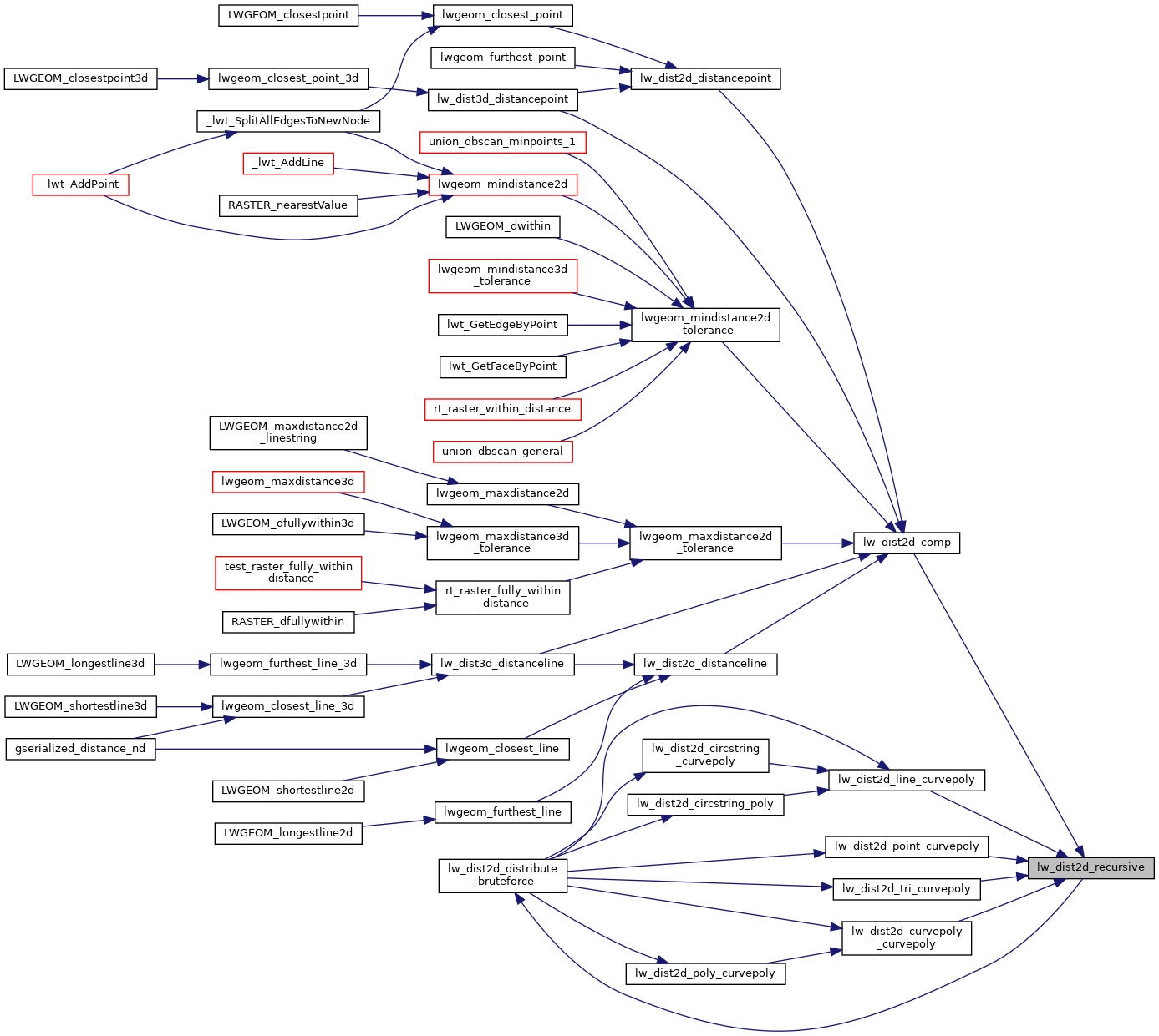 References LWGEOM::bbox, DIST_MAX, DIST_MIN, DISTPTS::distance, LWCOLLECTION::geoms, LINETYPE, lw_dist2d_check_overlap(), lw_dist2d_distribute_bruteforce(), lw_dist2d_distribute_fast(), lw_dist2d_is_collection(), LW_FALSE, LW_TRUE, LWDEBUG, LWDEBUGF, lwgeom_add_bbox(), lwgeom_as_lwcollection(), lwgeom_is_empty(), DISTPTS::mode, LWCOLLECTION::ngeoms, POLYGONTYPE, DISTPTS::tolerance, TRIANGLETYPE, and LWGEOM::type.