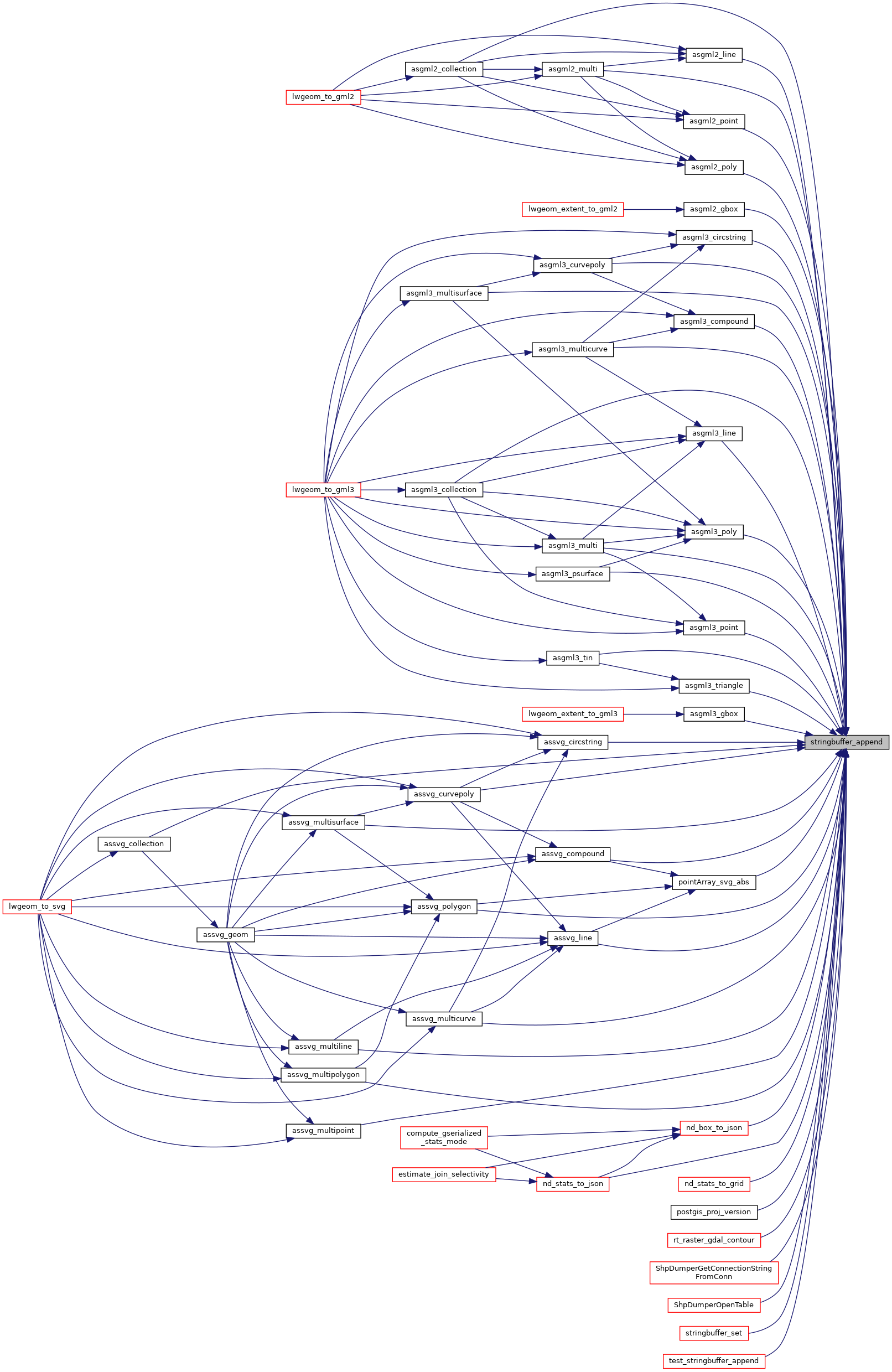 Referenced by asgml2_collection(), asgml2_gbox(), asgml2_line(), asgml2_multi(), asgml2_point(), asgml2_poly(), asgml3_circstring(), asgml3_collection(), asgml3_compound(), asgml3_curvepoly(), asgml3_gbox(), asgml3_line(), asgml3_multi(), asgml3_multicurve(), asgml3_multisurface(), asgml3_point(), asgml3_poly(), asgml3_psurface(), asgml3_tin(), asgml3_triangle(), assvg_circstring(), assvg_collection(), assvg_compound(), assvg_curvepoly(), assvg_line(), assvg_multicurve(), assvg_multiline(), assvg_multipoint(), assvg_multipolygon(), assvg_multisurface(), assvg_polygon(), nd_box_to_json(), nd_stats_to_grid(), nd_stats_to_json(), pointArray_svg_abs(), postgis_proj_version(), rt_raster_gdal_contour(), ShpDumperGetConnectionStringFromConn(), ShpDumperOpenTable(), stringbuffer_set(), and test_stringbuffer_append().