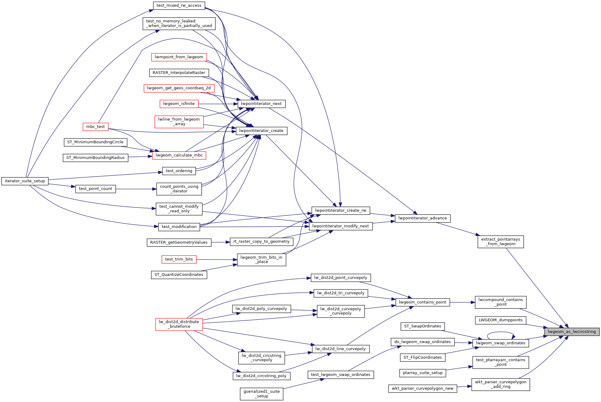 Referenced by extract_pointarrays_from_lwgeom(), lwcompound_contains_point(), LWGEOM_dumppoints(), lwgeom_swap_ordinates(), test_ptarrayarc_contains_point(), and wkt_parser_curvepolygon_add_ring().