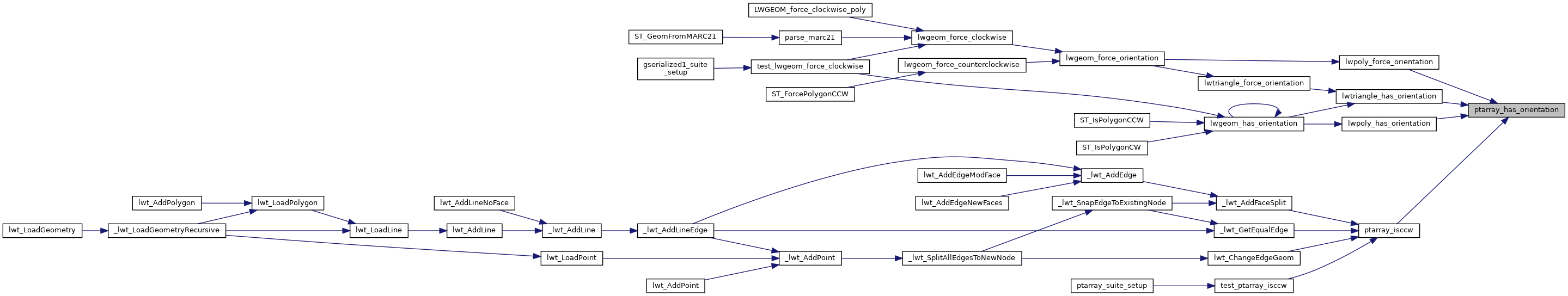 References LW_CLOCKWISE, LW_COUNTERCLOCKWISE, and ptarray_signed_area().