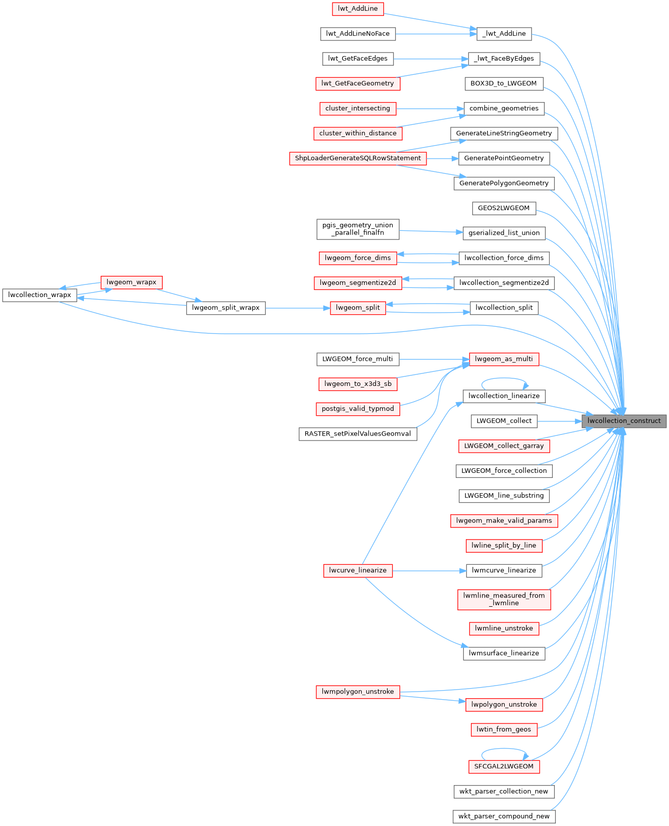 Referenced by _lwt_AddLine(), _lwt_FaceByEdges(), BOX3D_to_LWGEOM(), combine_geometries(), GenerateLineStringGeometry(), GeneratePointGeometry(), GeneratePolygonGeometry(), GEOS2LWGEOM(), gserialized_list_union(), lwcollection_force_dims(), lwcollection_linearize(), lwcollection_segmentize2d(), lwcollection_split(), lwcollection_wrapx(), lwgeom_as_multi(), LWGEOM_collect(), LWGEOM_collect_garray(), LWGEOM_force_collection(), LWGEOM_line_substring(), lwgeom_make_valid_params(), lwline_split_by_line(), lwmcurve_linearize(), lwmline_measured_from_lwmline(), lwmline_unstroke(), lwmpolygon_unstroke(), lwmsurface_linearize(), lwpolygon_unstroke(), lwtin_from_geos(), SFCGAL2LWGEOM(), wkt_parser_collection_new(), and wkt_parser_compound_new().
