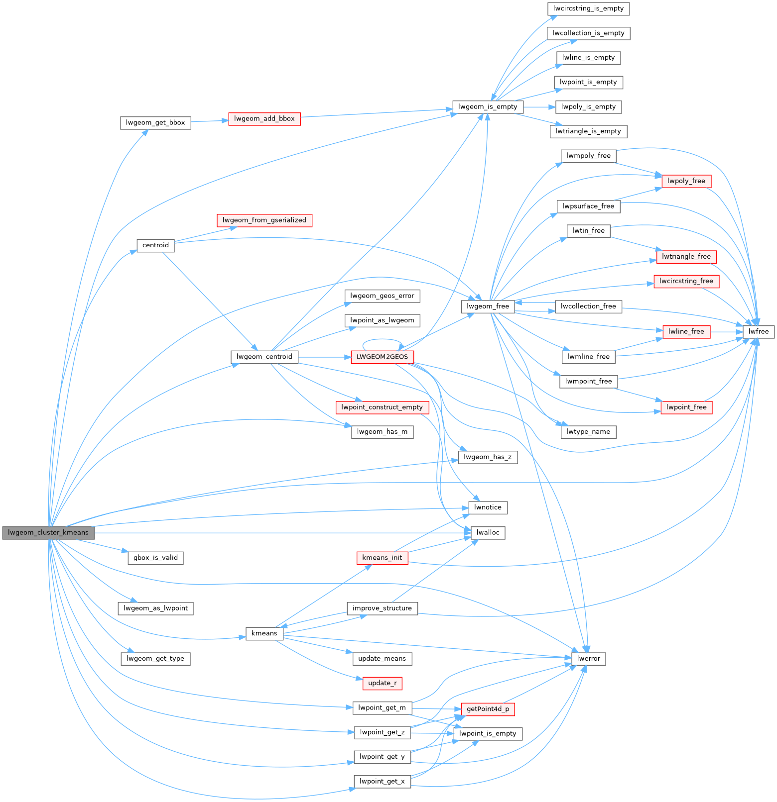 References centroid(), gbox_is_valid(), kmeans(), KMEANS_NULL_CLUSTER, LW_TRUE, lwalloc(), lwerror(), lwfree(), lwgeom_as_lwpoint(), lwgeom_centroid(), lwgeom_free(), lwgeom_get_bbox(), lwgeom_get_type(), lwgeom_has_m(), lwgeom_has_z(), lwgeom_is_empty(), lwnotice(), lwpoint_get_m(), lwpoint_get_x(), lwpoint_get_y(), lwpoint_get_z(), POINT4D::m, POINTTYPE, POINT4D::x, GBOX::xmax, GBOX::xmin, POINT4D::y, GBOX::ymax, GBOX::ymin, POINT4D::z, GBOX::zmax, and GBOX::zmin.