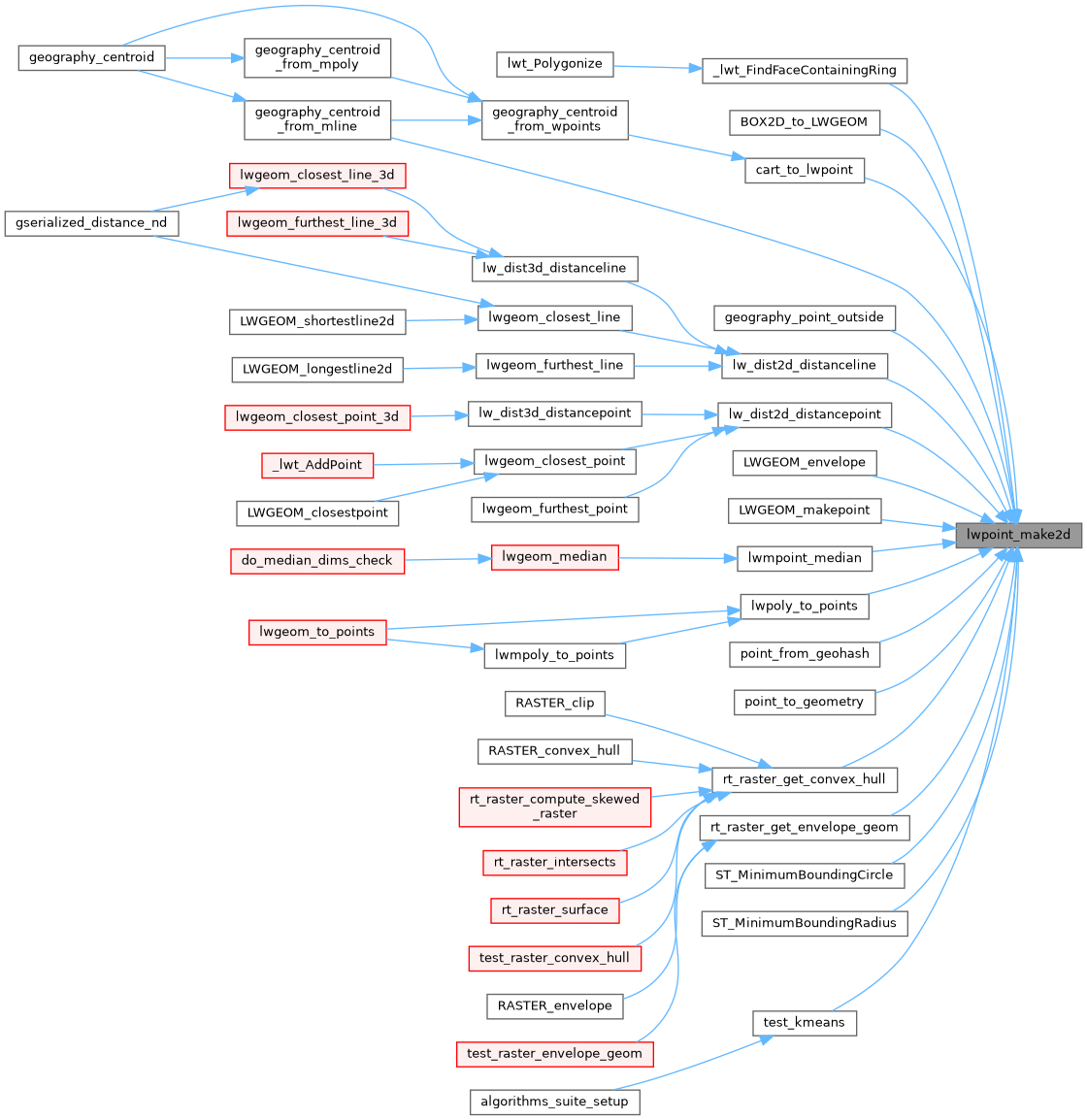 Referenced by _lwt_FindFaceContainingRing(), BOX2D_to_LWGEOM(), cart_to_lwpoint(), geography_centroid_from_mline(), geography_point_outside(), lw_dist2d_distanceline(), lw_dist2d_distancepoint(), LWGEOM_envelope(), LWGEOM_makepoint(), lwmpoint_median(), lwpoly_to_points(), point_from_geohash(), point_to_geometry(), rt_raster_get_convex_hull(), rt_raster_get_envelope_geom(), ST_MinimumBoundingCircle(), ST_MinimumBoundingRadius(), and test_kmeans().