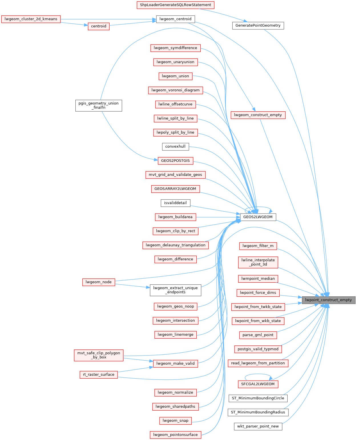 Referenced by GeneratePointGeometry(), GEOS2LWGEOM(), lwgeom_centroid(), lwgeom_construct_empty(), lwgeom_filter_m(), lwgeom_pointonsurface(), lwline_interpolate_point_3d(), lwmpoint_median(), lwpoint_force_dims(), lwpoint_from_twkb_state(), lwpoint_from_wkb_state(), parse_gml_point(), postgis_valid_typmod(), read_lwgeom_from_partition(), SFCGAL2LWGEOM(), ST_MinimumBoundingCircle(), ST_MinimumBoundingRadius(), and wkt_parser_point_new().