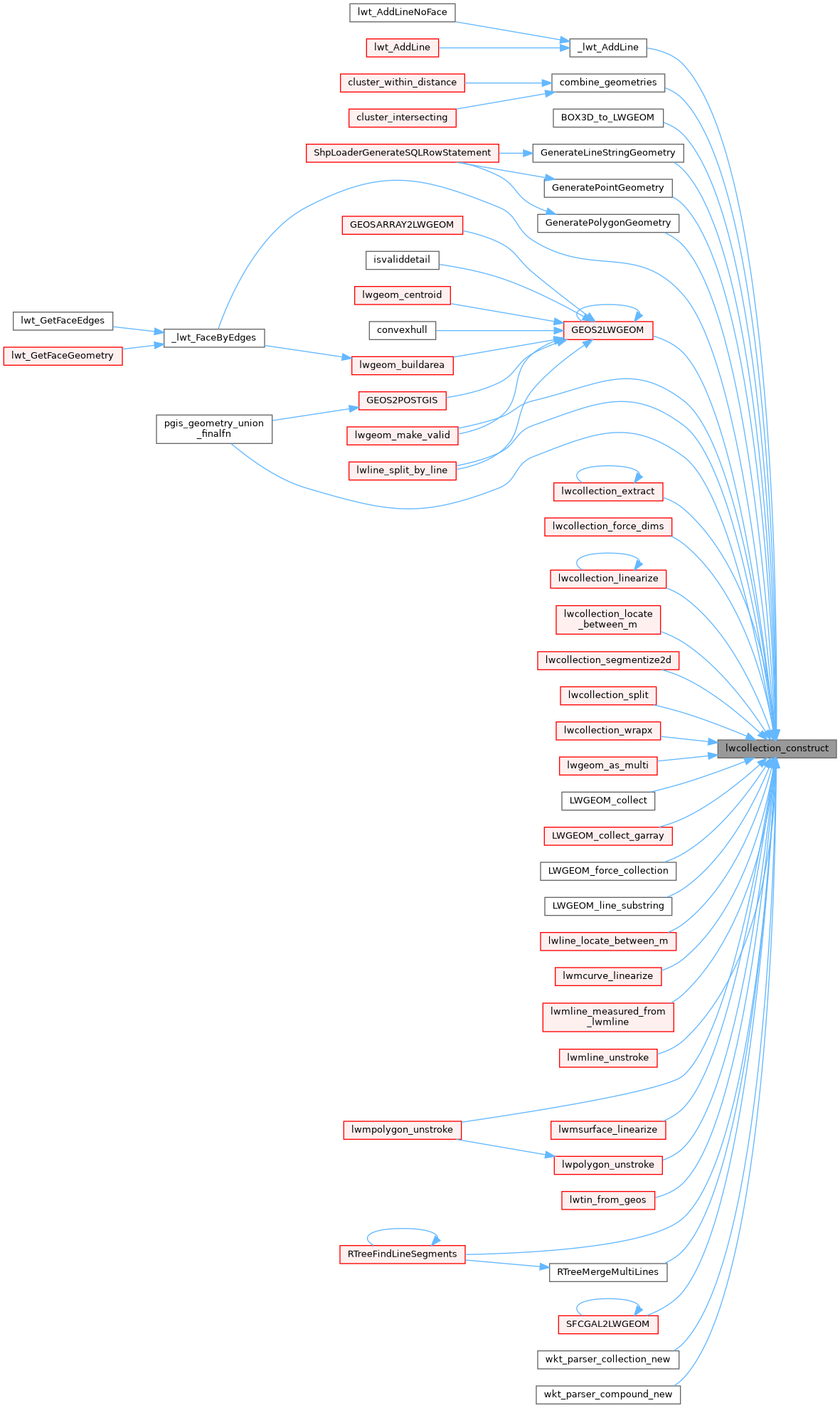 Referenced by _lwt_AddLine(), _lwt_FaceByEdges(), BOX3D_to_LWGEOM(), combine_geometries(), GenerateLineStringGeometry(), GeneratePointGeometry(), GeneratePolygonGeometry(), GEOS2LWGEOM(), lwcollection_extract(), lwcollection_force_dims(), lwcollection_linearize(), lwcollection_locate_between_m(), lwcollection_segmentize2d(), lwcollection_split(), lwcollection_wrapx(), lwgeom_as_multi(), LWGEOM_collect(), LWGEOM_collect_garray(), LWGEOM_force_collection(), LWGEOM_line_substring(), lwgeom_make_valid(), lwline_locate_between_m(), lwline_split_by_line(), lwmcurve_linearize(), lwmline_measured_from_lwmline(), lwmline_unstroke(), lwmpolygon_unstroke(), lwmsurface_linearize(), lwpolygon_unstroke(), lwtin_from_geos(), pgis_geometry_union_finalfn(), RTreeFindLineSegments(), RTreeMergeMultiLines(), SFCGAL2LWGEOM(), wkt_parser_collection_new(), and wkt_parser_compound_new().