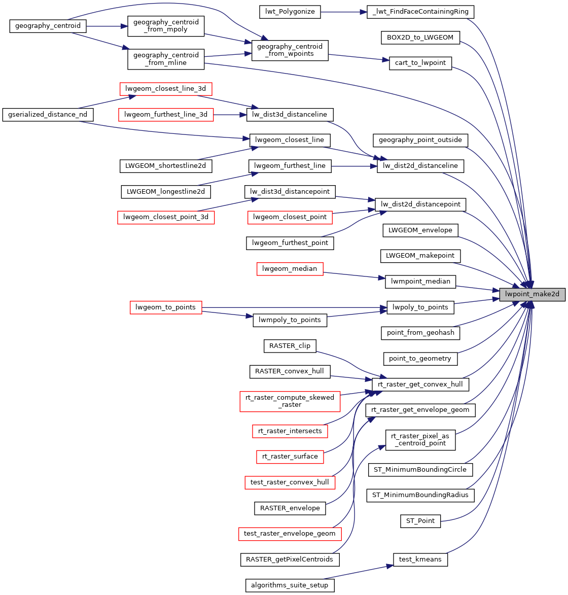Referenced by _lwt_FindFaceContainingRing(), BOX2D_to_LWGEOM(), cart_to_lwpoint(), geography_centroid_from_mline(), geography_point_outside(), lw_dist2d_distanceline(), lw_dist2d_distancepoint(), LWGEOM_envelope(), LWGEOM_makepoint(), lwmpoint_median(), lwpoly_to_points(), point_from_geohash(), point_to_geometry(), rt_raster_get_convex_hull(), rt_raster_get_envelope_geom(), rt_raster_pixel_as_centroid_point(), ST_MinimumBoundingCircle(), ST_MinimumBoundingRadius(), ST_Point(), and test_kmeans().