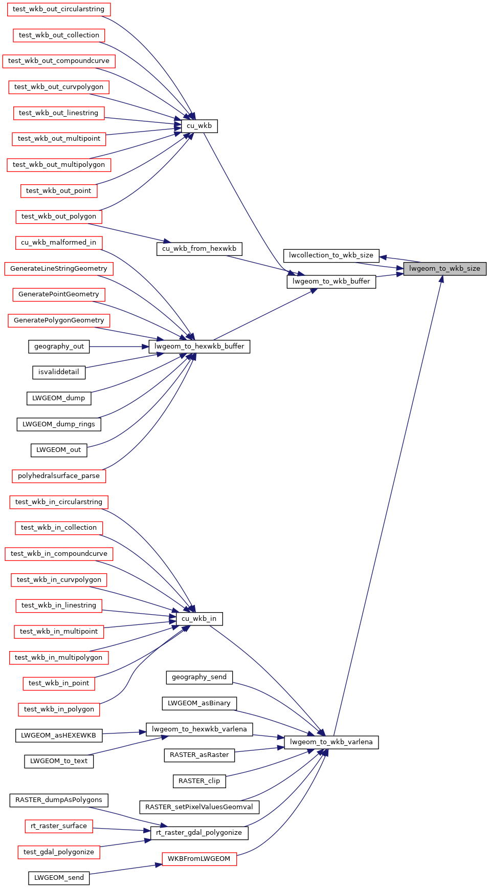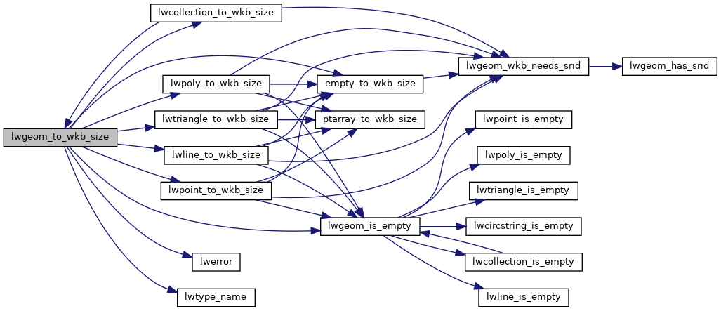 References CIRCSTRINGTYPE, COLLECTIONTYPE, COMPOUNDTYPE, CURVEPOLYTYPE, empty_to_wkb_size(), LINETYPE, lwcollection_to_wkb_size(), LWDEBUG, lwerror(), lwgeom_is_empty(), lwline_to_wkb_size(), lwpoint_to_wkb_size(), lwpoly_to_wkb_size(), lwtriangle_to_wkb_size(), lwtype_name(), MULTICURVETYPE, MULTILINETYPE, MULTIPOINTTYPE, MULTIPOLYGONTYPE, MULTISURFACETYPE, POINTTYPE, POLYGONTYPE, POLYHEDRALSURFACETYPE, TINTYPE, TRIANGLETYPE, LWGEOM::type, LWPOINT::type, variant, and WKB_EXTENDED.