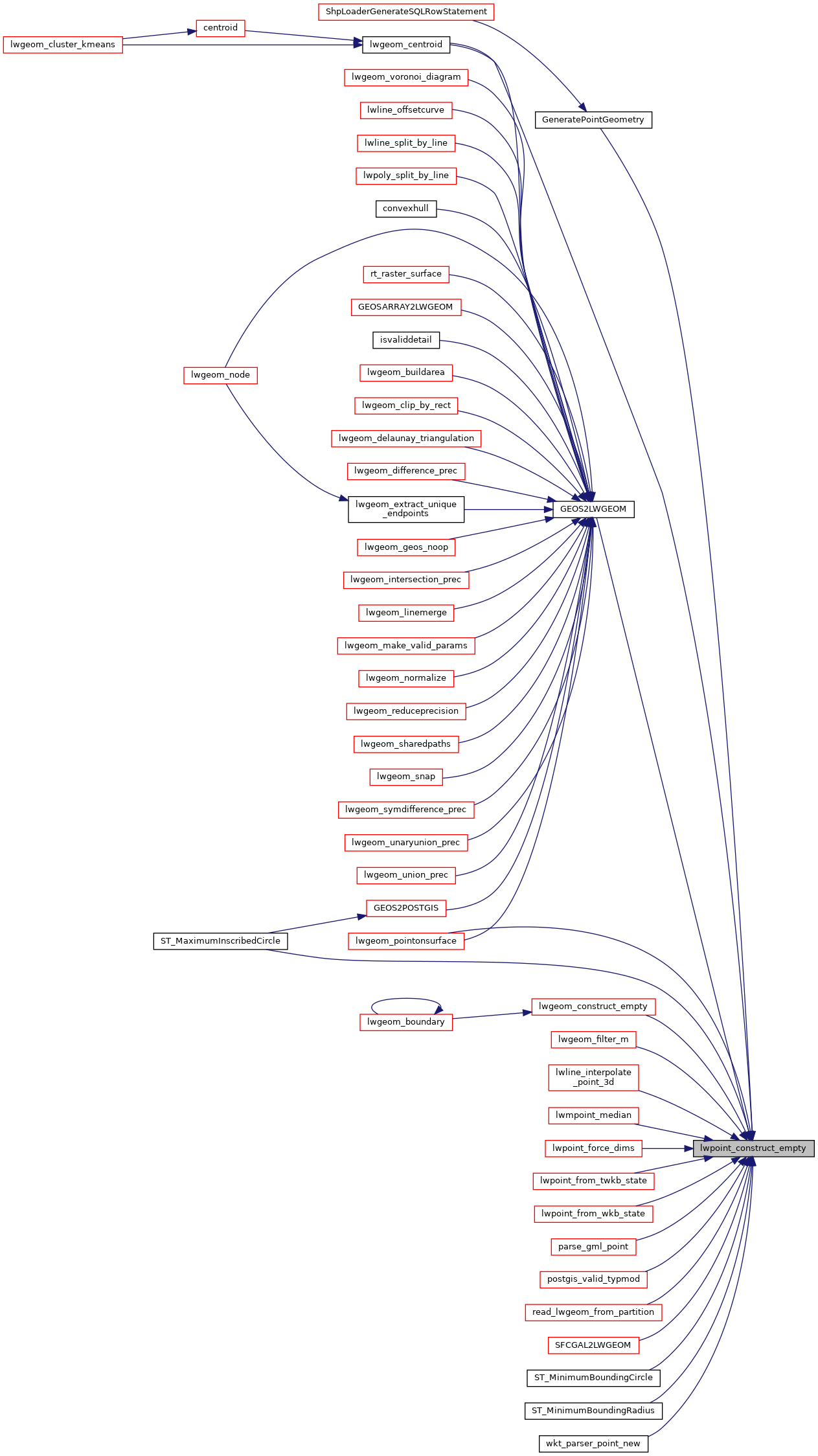 Referenced by GeneratePointGeometry(), GEOS2LWGEOM(), lwgeom_centroid(), lwgeom_construct_empty(), lwgeom_filter_m(), lwgeom_pointonsurface(), lwline_interpolate_point_3d(), lwmpoint_median(), lwpoint_force_dims(), lwpoint_from_twkb_state(), lwpoint_from_wkb_state(), parse_gml_point(), postgis_valid_typmod(), read_lwgeom_from_partition(), SFCGAL2LWGEOM(), ST_MaximumInscribedCircle(), ST_MinimumBoundingCircle(), ST_MinimumBoundingRadius(), and wkt_parser_point_new().
